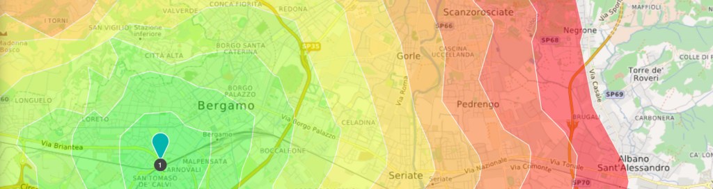 Con lo sviluppo della tecnologia, oggi possiamo creare facilmente mappe isocrone interattive (qui trovate un tutorial su come farlo utilizzando openrouteservice.org).
