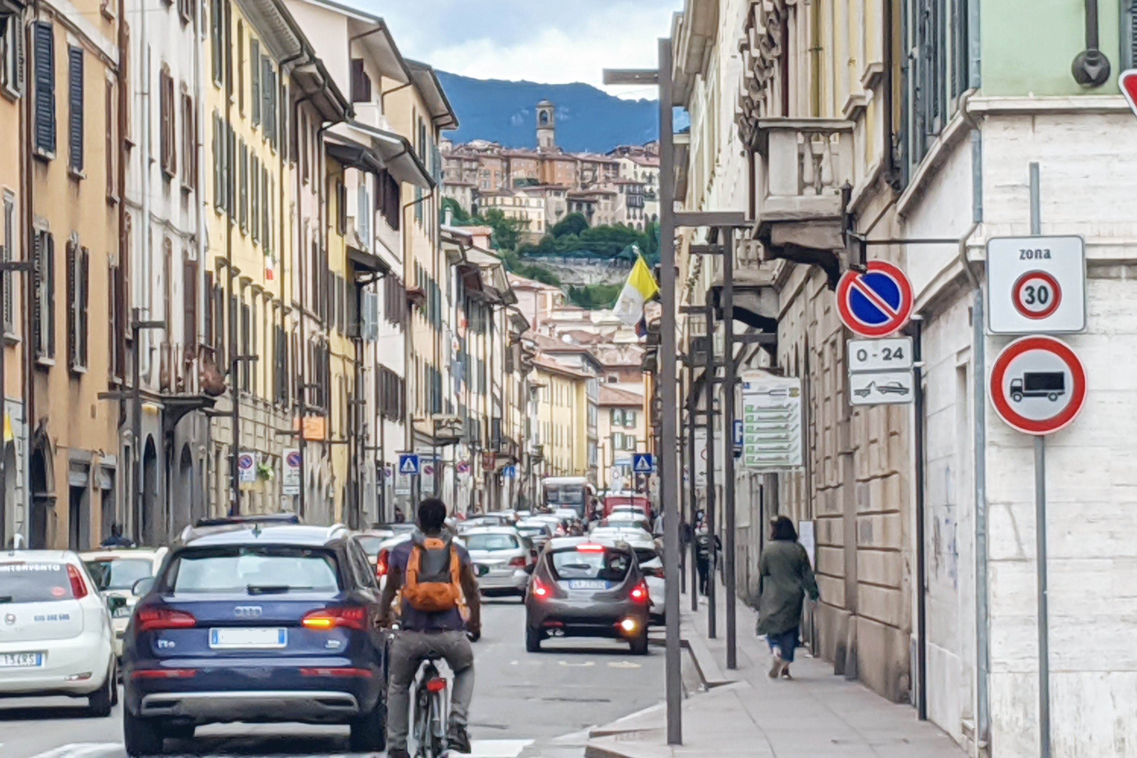 Settimana scorsa il consiglio comunale di Bergamo ha fatto la proposta coraggiosa di abbassare il limite a 30 km/h sull’80% delle strade cittadine. Non sarà un percorso breve, ma la volontà politica c’è, e i tempi sono maturi per un progetto del genere. È stato scritto moltissimo su come la riduzione dei limiti aumenti la sicurezza per gli utenti deboli della strada, diminuendo la probabilità e la gravità degli incidenti, e di come permetta di rendere le strade più vivibili e piacevoli per tutti, qui trovate ad esempio una presentazione preparata dall’architetto Matteo Dondé sui vantaggi delle zone 30.