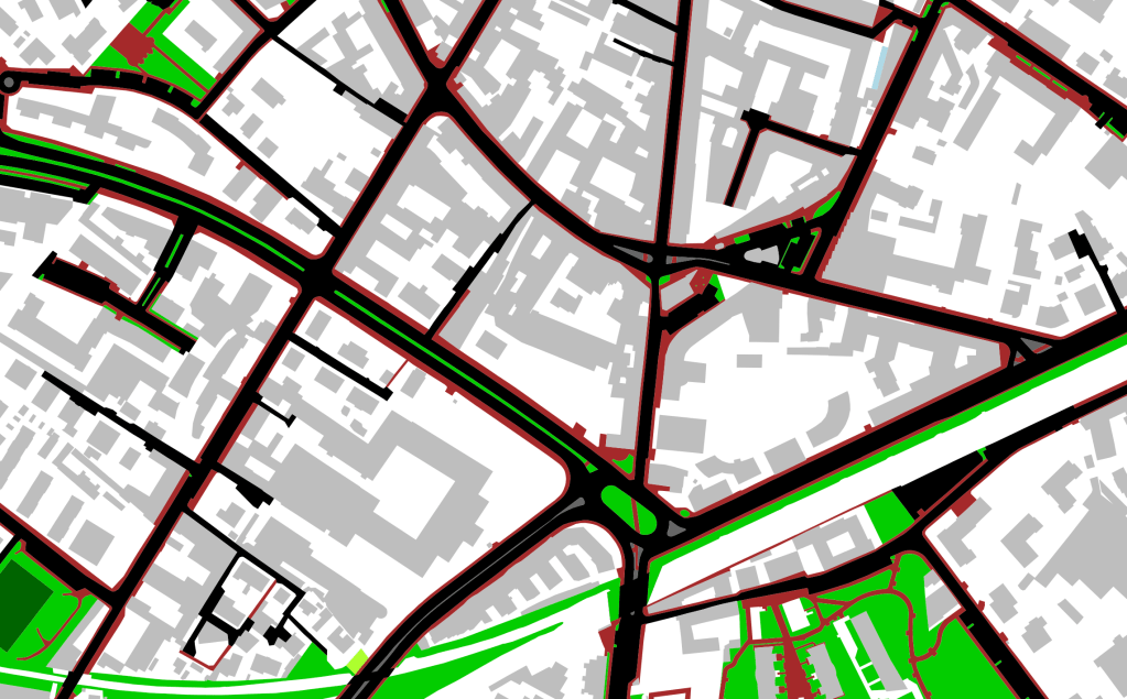 Usando i dati geografici messi a disposizione dal Comune di Bergamo abbiamo provato a fare i conti. I dati (disponibili qui) descrivono in modo accurato l’uso dello spazio cittadino a dedicato a diversi usi (strade, marciapiedi, parchi, verde agricolo, edifici, ecc.). L’elaborazione è stata svolta usando il pacchetto “sf” in R. Purtroppo i dati sono abbastanza vecchi, e non tengono conto delle evoluzioni urbanistiche degli ultimi 10 anni circa. Ripeteremo l’analisi quando i nuovi dati saranno disponibili.