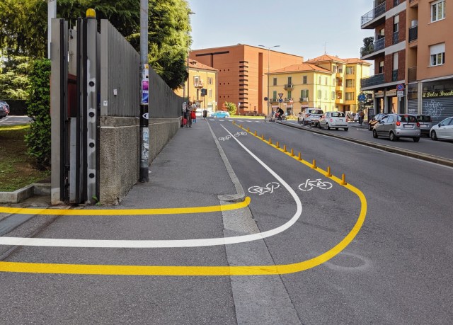 - Creazione di un tratto di pista ciclabile in sede separata sul tratto di via dei Caniana che collega largo Tironi all’ingresso dell’università.